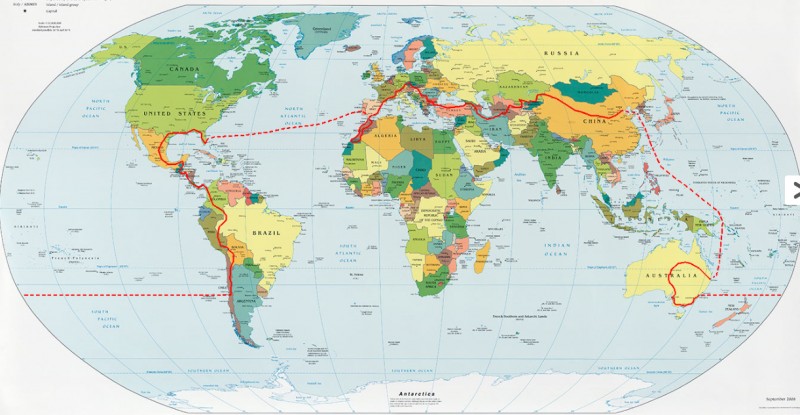 Между 20 и 25 юни 2014 г. Дойчинов и Монев ще стартират околосветското си пътешествие от Прага, като ще спрат в Сливен. Оттук двамата ще продължат по трасето: Гърция, Турция, Грузия, Азербайджан, Туркменистан, Узбекистан, Казахстан, Китай, Австралия, Чили, Аржентина, Боливия, Перу, Бразилия, Колумбия, Панама, Коста Рика, Хондурас, Гватемала, Мексико, САЩ, Португалия, Испания, Мароко, Западна Сахара, Гибралтар, Франция, Италия, Швейцария, Лихтенщайн, Австрия, Германия и ще завършат обиколката си на петте континента отново в Прага.