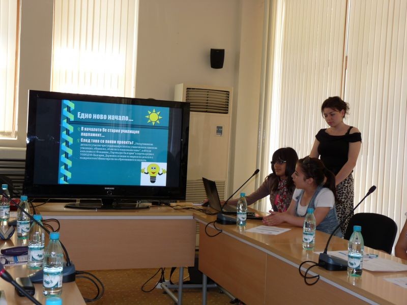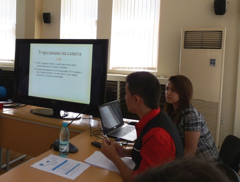 Ученици от включените в проект „Насърчаване на детското участие чрез засилване на ролята на ученическите съвети на училищно, общинско, областно и национално равнище“ училища от област Сливен направиха своите презентации по важни теми, свързани с механизма на детско участие и дискутираха върху трудностите при прилагането му и потенциалните насоки на развитие.