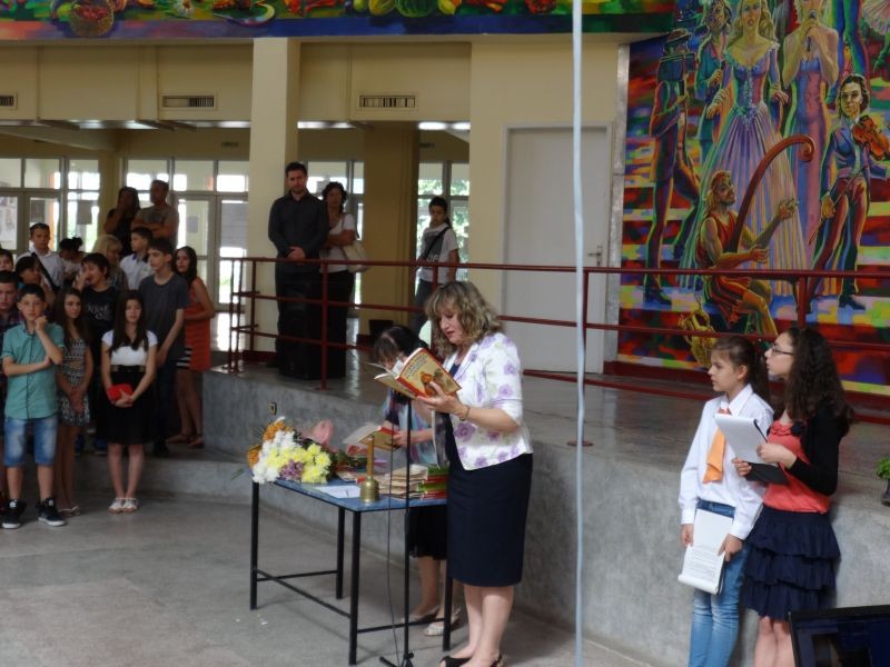 Днес по традиция тържествено се закрива учебната година в ОУ „Елисавета Багряна” и се изпраща випуска седмокласници. Успехите на випуска са забележителни. Много награди от общински и национални състезания, конкурси и олимпиади. Много добро е представянето на НВО и приемните изпити след VІІ клас. Има и трима пълни отличници: Георги Тонев Ангелов – VІІ „а” клас, Екатерина Миленова Петрова – VІІ „б” клас, Самуил Григоров Георгиев – VІІ „в” клас.