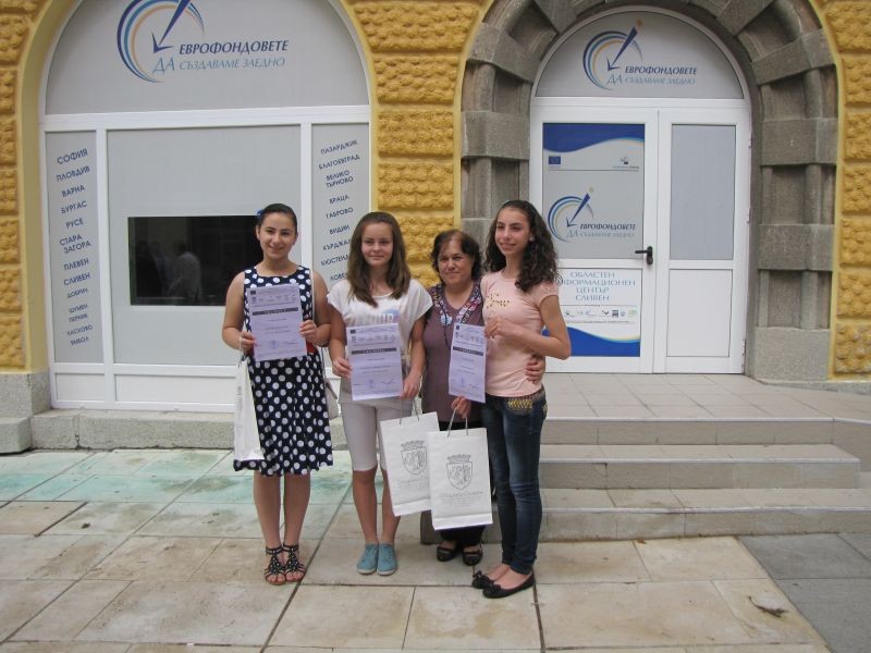 На 19.06 2014 г. в общински информационен център бяха наградени Габриела Андонова, Яна Гюзелева, Сусанна Давтян и Радина Омайникова от 6"Б" клас за добро представяне в конкурса за написване на есе на тема „Пъстротата е нашето богатство” по европейски проект „Образователна интеграция на деца и ученици от етническите малцинства на територията на община Сливен” от кмета на град Сливен.