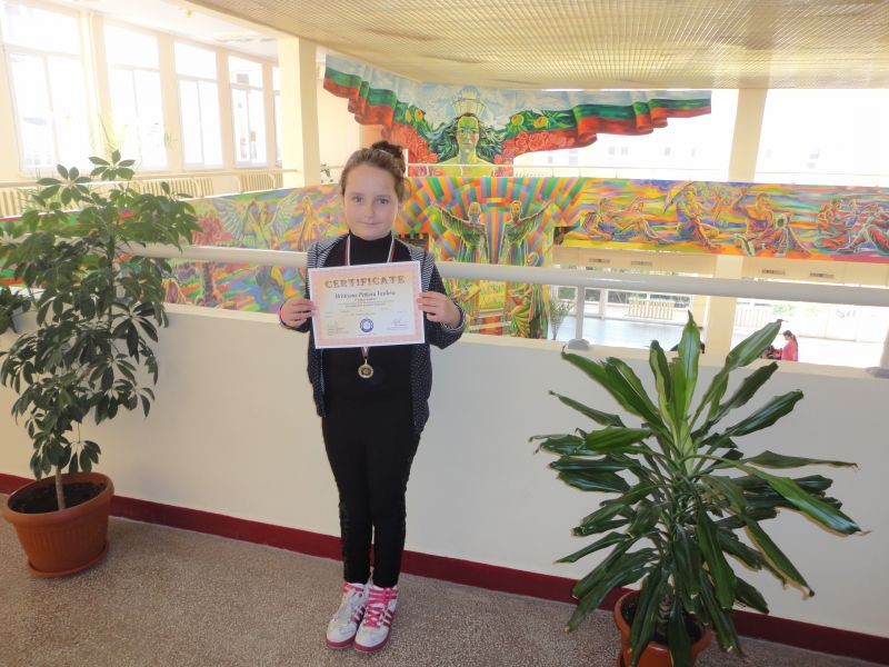 На 31.10.2014 г. Християна Петкова Василева – ученичка от II“в“ клас при ОУ „Елисавета Багряна“ участва в Международно състезание „Математика без граници“ – есенен кръг и бе наградена със златен медал във възрастова група – II клас.
