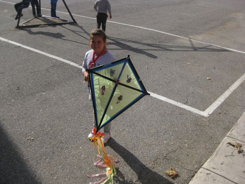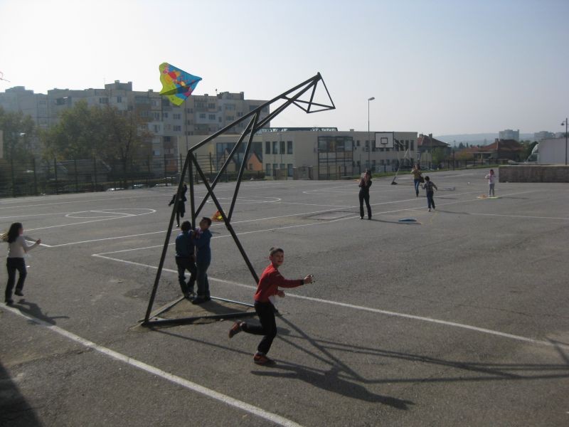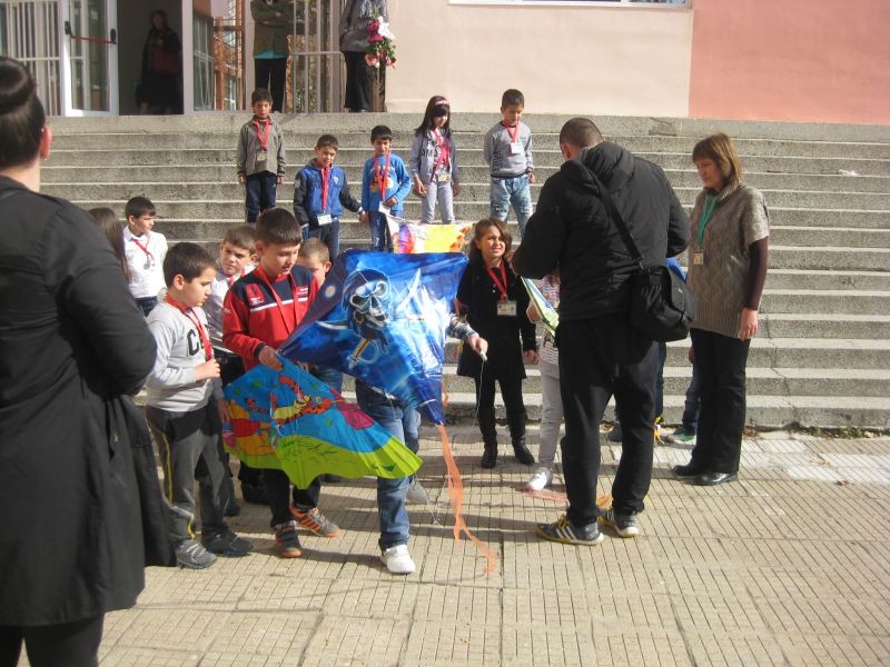 Оригинални модели хвърчила - весели и закачливи, изработени от децата, литнаха в училищния двор.