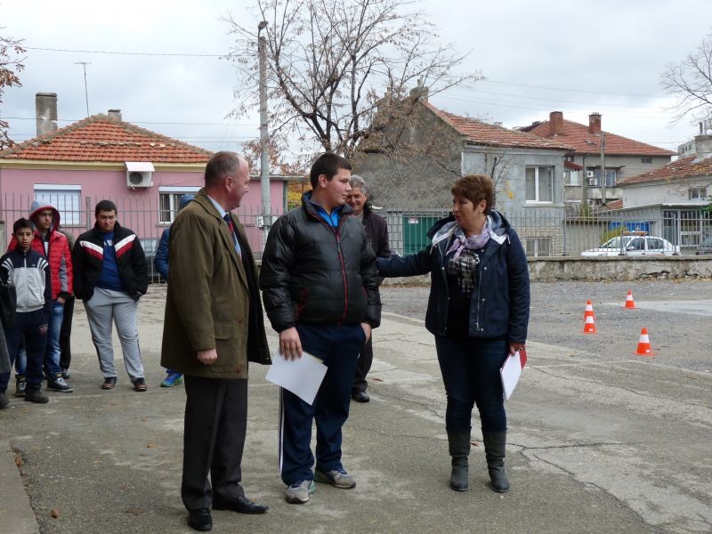 Заключителната фаза на събитието бе ученическа надпревара по безопасно управление на МПС. Състезанието протече в два етапа – теоретична, с решаване листовки и изпълнение на практическо задание по управление на учебен автомобил по очертания полигон в двора на училището. Целта на организаторите е да насочат вниманието на младите шофьори към опасностите на пътя и важната роля на всеки участник в движението в превенцията на човешкия живот.