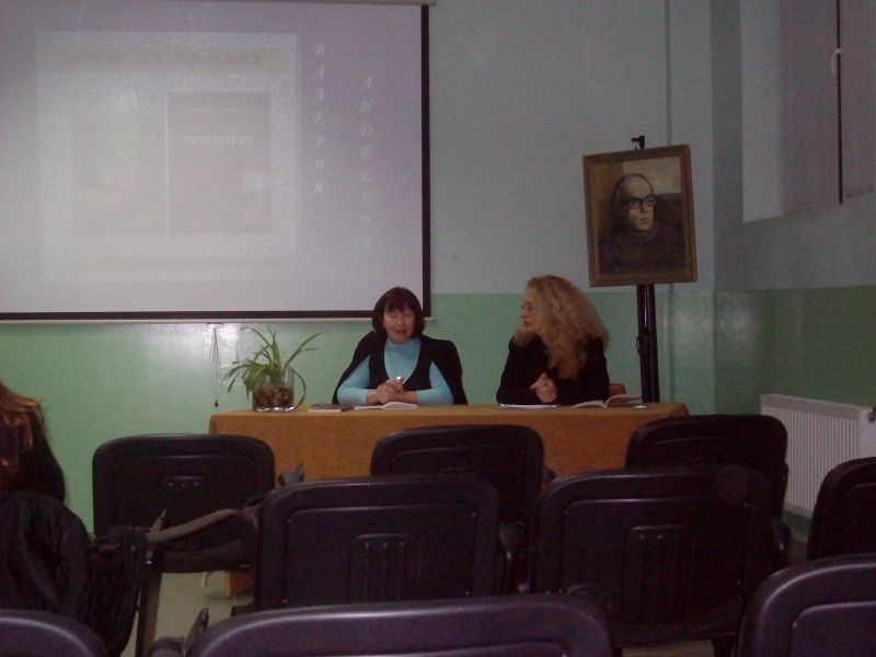 На 11 декември 2014 г. в мултимедийната зала на Хуманитарна гимназия „Дамян Дамянов” се проведе Вечер на прозата с участието на Валерия Андреева, автор на книгата „Грънчарят”. Срещата бе в подкрепа на инициативата на Министерство на културата и Министерство на образованието, протичаща под патронажа на президента на Република България – „Чети с мен”. За творбата и нейната авторка говори Дочка Петрова, учител в гимназията. Писателката отговори на поставените от участниците в срещата въпроси – за жанровите особености на произведението, за литературата и езика , за четенето като духовна потребност, за посланията на твореца към младото поколение и др. В представителната зала на гимназията е подредена и изложба от произведения на ученици – участници в кръжока по керамика в Социално-педагогическия интернат „Христо Ботев” в с. Драгоданово. В гимназията предстоят и други прояви, свързани с четенето, един от трите стълба на хуманитарното образование, наред с творческото писане и критическото мислене.