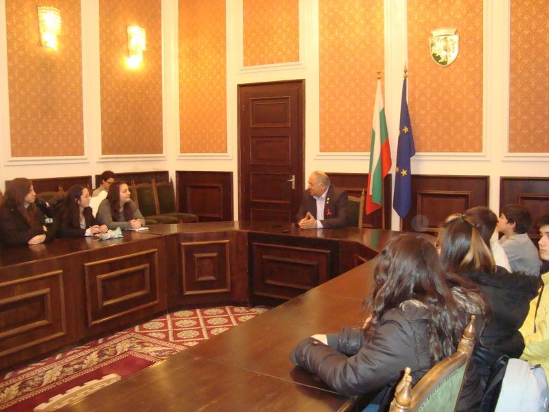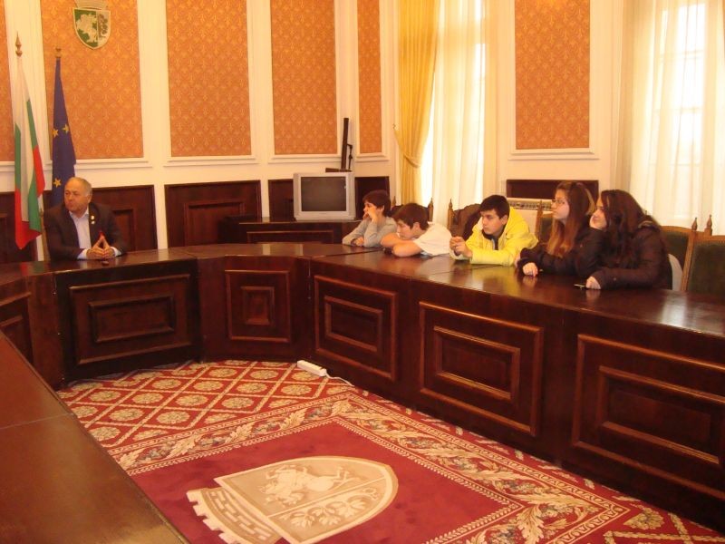 Участниците в клуб „ Радио- телевизионна журналистика” при Хуманитарна гимназия „ Дамян Дамянов”- Сливен зададоха своите въпроси на кмета на общината Кольо Милев и на председателя на Общинския съвет Мария Григорова.” Как ще се опази новата главна улица на Сливен?”, „ Ще се изгради ли площадка за екстремен велосипедизъм? „, Ще влязат ли в употреба „ паяците”, които да вдигат неправилно паркираните автомобили?”, „ Има ли желаещи да отварят предприятия, за да им нови работни места?”. Това бяха част от въпросите, които зададоха бъдещите журналисти по време на импровизиран брифинг с кмета на общината. Той се проведе в залата, където всяка седмица такъв брифинг се прави с големите журналисти. Кметът отговори на въпросите на децата. Направи го и председателят на общинския съвет Мария Григорова. Тя посрещна учениците от клуба в своя кабинет и им обясни какво работи Общинския съвет. И тук не липсваха въпроси, а и предложения. Като това Сливен да си има девиз- така както има редица градове в страната.
