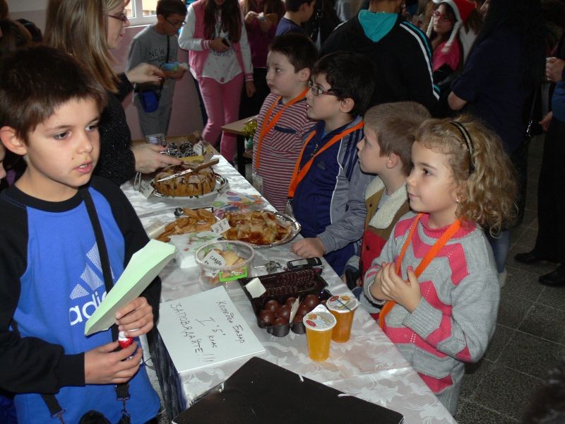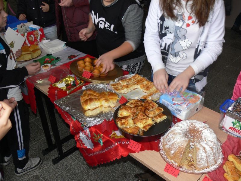 Импровизираните щандове, отрупани с коледни лакомства, картички и сувенири привличаха вниманието на малки и големи. "Търговци" и "купувачи" бяха с приповдигнато празнично настроение.
