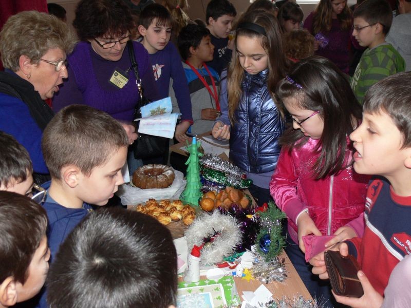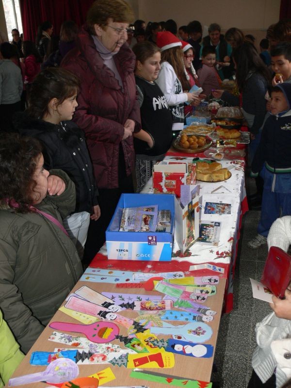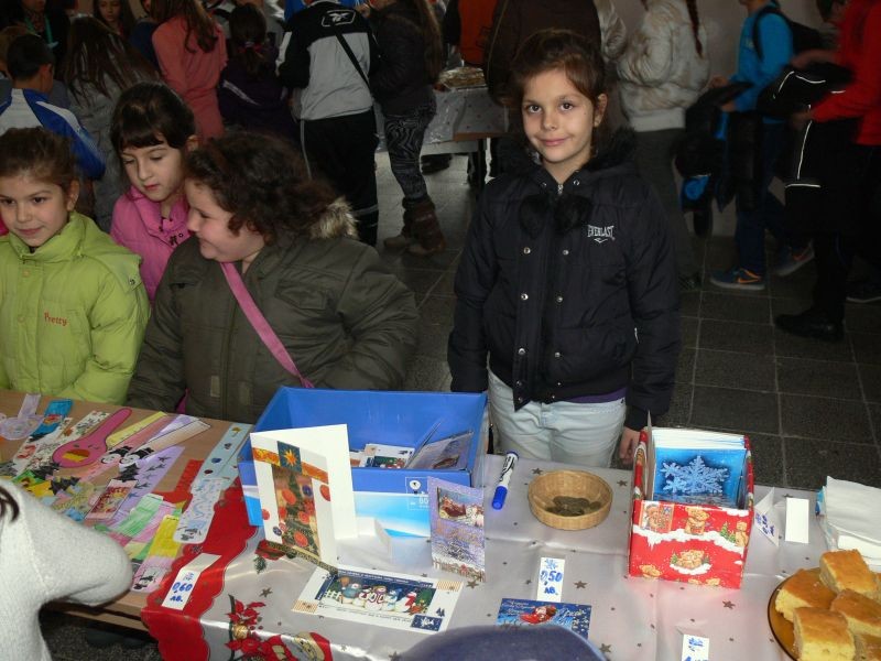 Импровизираните щандове, отрупани с коледни лакомства, картички и сувенири привличаха вниманието на малки и големи. "Търговци" и "купувачи" бяха с приповдигнато празнично настроение.