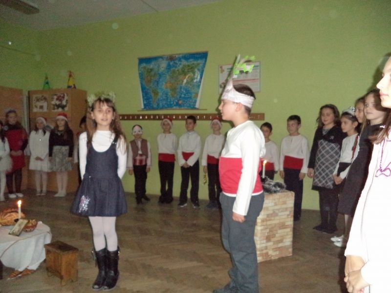 Като истински актьори и певци децата изнесоха спектакъл, зареден с коледен дух и настроение! Те пресъздадоха народни обичаи свързани с Бъдни вечер, посрещане на коледари и благопожеланията им за здраве и плодородие, изпълниха стихотворения и песни посветени на предстоящите коледни и новогодишни празници! Представителната изява уважиха класните ръководители г-ца Е. Сярова, г-жа Ст. Йосифова и г-жа Д. Калискова, учители и родители!