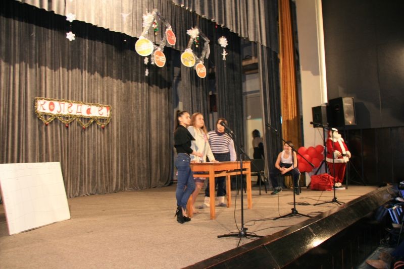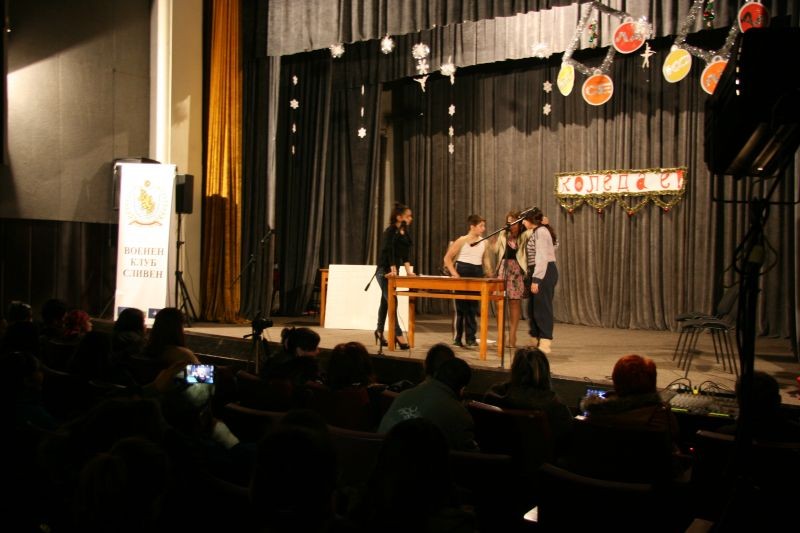 Със станало вече традиционно коледно шоу учениците от Хуманитарна гимназия "Д. Дамянов" изпратиха последния учебен ден за 2014 година. За доброто предпразнично настроение на всички присъстващи допринесоха изпълненията на група "Монолог", балет "Грация", клуб по акробатика "Ст. Данчев" и ученици от 5 до 12 клас. Специален поздрав по повод предстоящите празници поднесоха ученици от НУ "В. Левски".