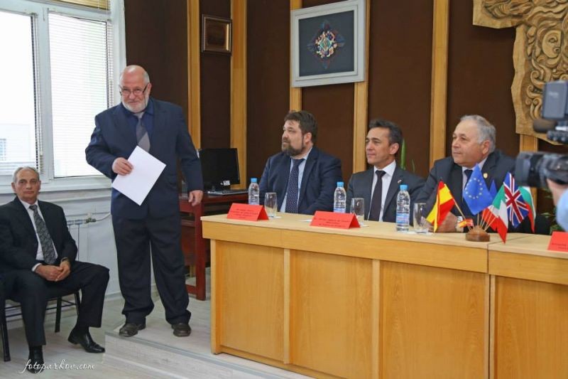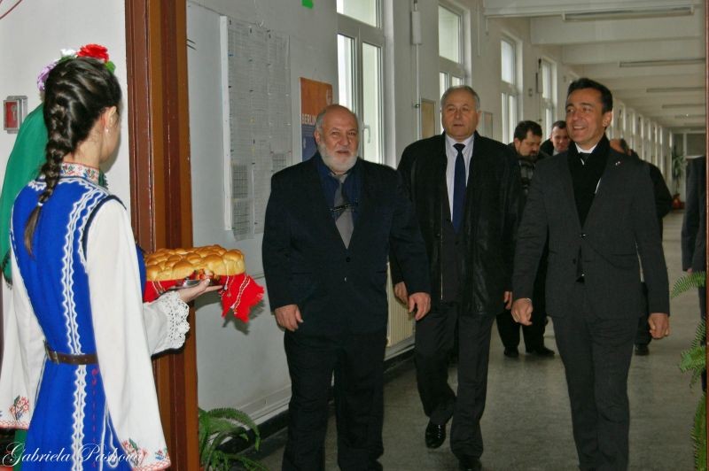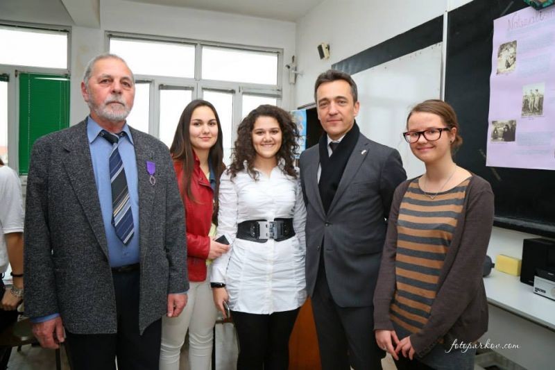 Церемонията започна с трогателна реч на френски език на г-н Дамян Петров – директор на гимназията, с която той изрази съпричастност към болката на френския народ и остро осъди всякакъв вид терористични актове и посегателства над свободата на словото. Негово Превъзходителство г-н Ксавие Лапер дьо Кабан благодари и подари последния брой на вестник „ Шарли Ебдо” на гимназията и кмета на града. След това официално връчи почетното отличие на г-н Стоянов, който развълнуван благодари на ръководството на гимназията , колегите и учениците си ,като заяви, че този орден е връх в неговата професионална кариера. Изключително емоционални бяха поздравленията на неговите бивши ученици, изказани на френски език, които трогнаха и просълзиха не малко хора в залата.