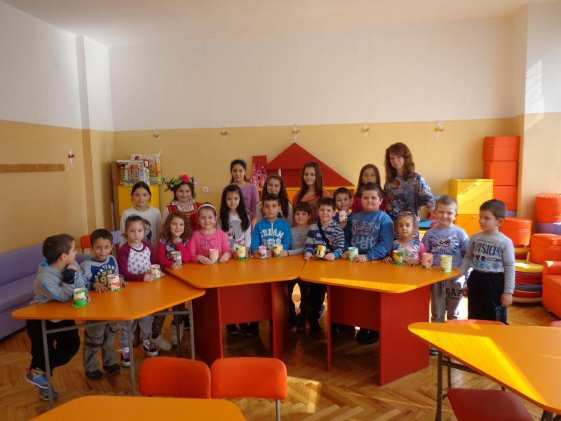 Четвъртокласници от училището помогнаха за изпълнения с усмивки и емоции ден, посрещайки ги с танци и помагайки им при изработката на закачливи моливници.