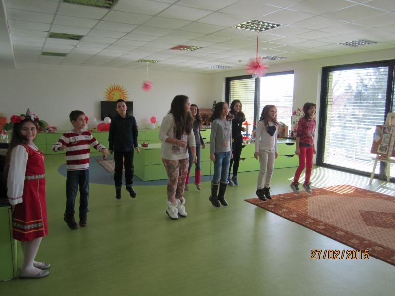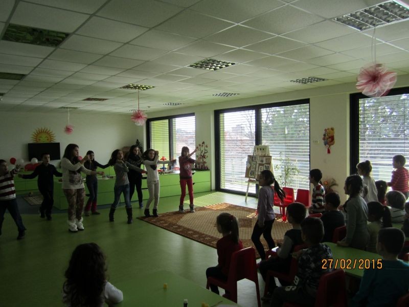 Изпълнявайки своя танц, те заредиха с емоции малките домакини, които не устояха и също се включиха в танците.