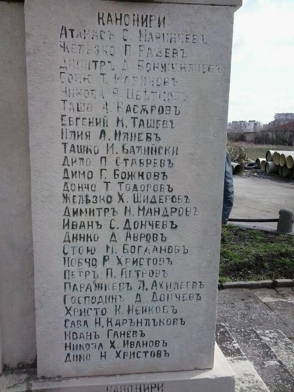 Днес - на 11.03. 2015г. група ученици и учители от Хуманитарна гимназия „Дамян Дамянов”- Сливен положиха цветя пред паметника на загиналите за България артилеристи от 6-ти Сливенски артилерийски полк. Датата се отбелязва в българската армия като Ден на артилериста. Свързана е с едно от изключителните събития в нашата история и връх в бойната ни слава - превземането на Одрин след упорити атаки на 11-ти, 12-ти и 13.03.1913 г. Шести артилерийски полк участва активно в тази битка в щурма на източния сектор. Споделяме фотографии на паметните плочи, поставени върху този позабравен днес паметник. На тях могат да се прочетат имената на 379 загинали генерали, офицери, подофицери, канонири, бомбардири и войници – достойни български войни. Трогателно е изписаното върху монумента признание за тях: "На тези, които останаха да ни чакат по бойните полета".