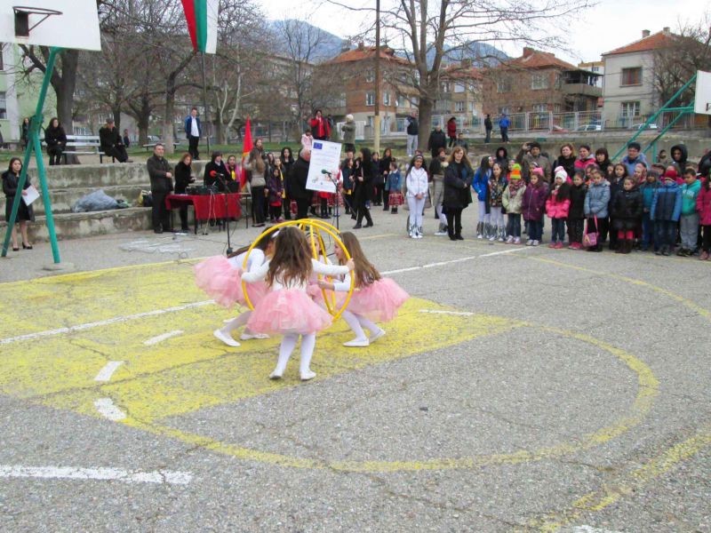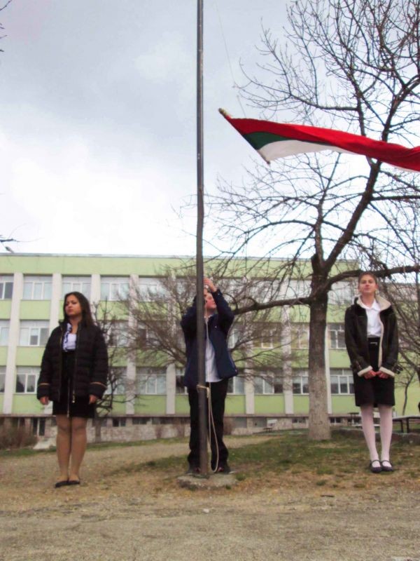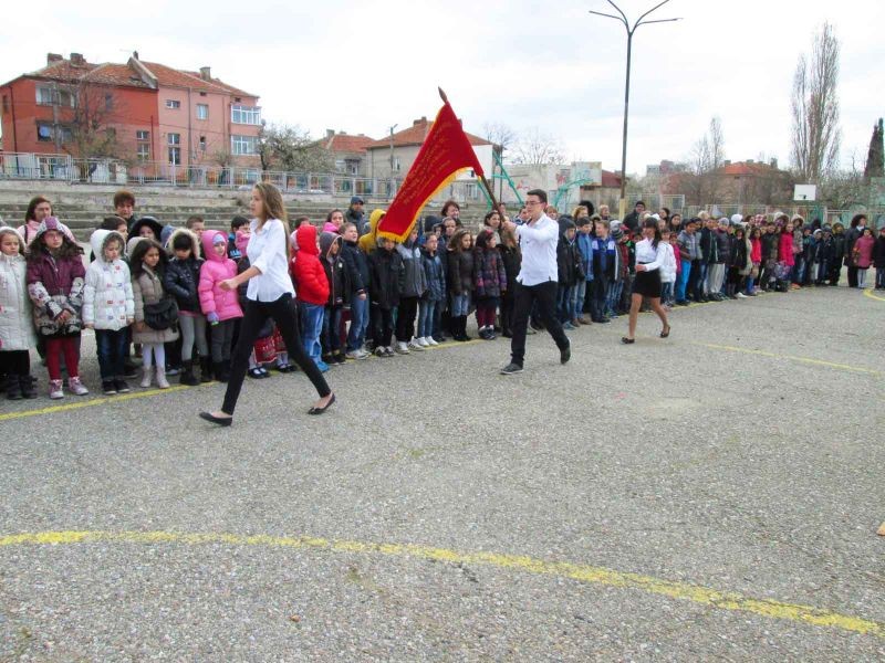 По традиция тържествата започнаха с издигането на националния флаг в двора на училището. Директорът на училището г-жа Виолета Пенчева поздрави ученици, учители, родители и гости на тържеството и връчи грамоти за най-добра литературна творба на ученици- Томислава Илиянова Захариева –VII а клас , Пламена Георгиева Русева-II а клас и Даяна Руменова Кюмюрева-II б клас , като и на победителите в състезанието по волейбол-V б клас, VI б клас, VII в клас.