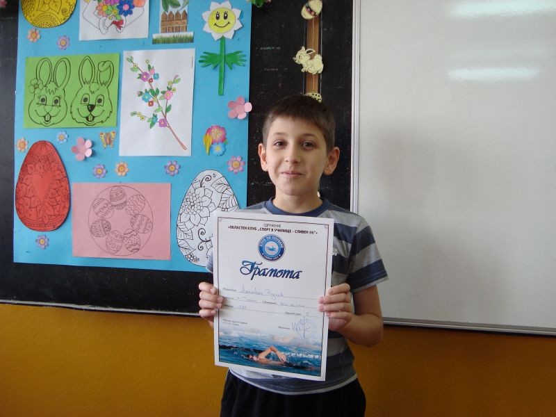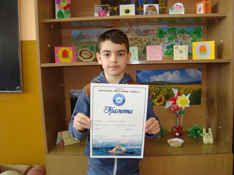 Учениците от II "а" клас заеха призови места във възрастова група "Златна рибка": Дияна Стоянова Димова спечели два златни медала на 50 м крол и 50 м гръб и сребърен на 200 м крол. Виктор Иванов Иванов спечели сребърен медал на 50 м бруст и бронзов на 50 м крол, а Румен Димов Димов - сребърен медал на 50 м крол.