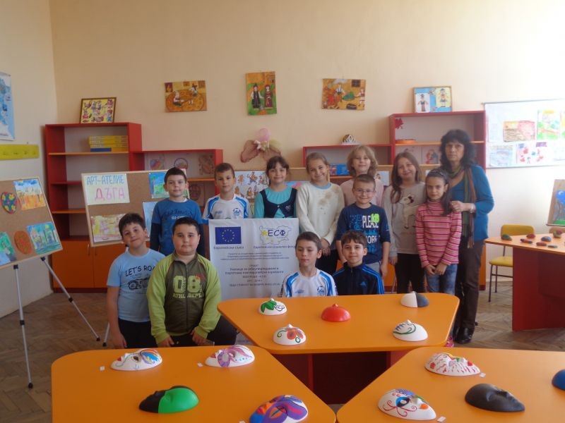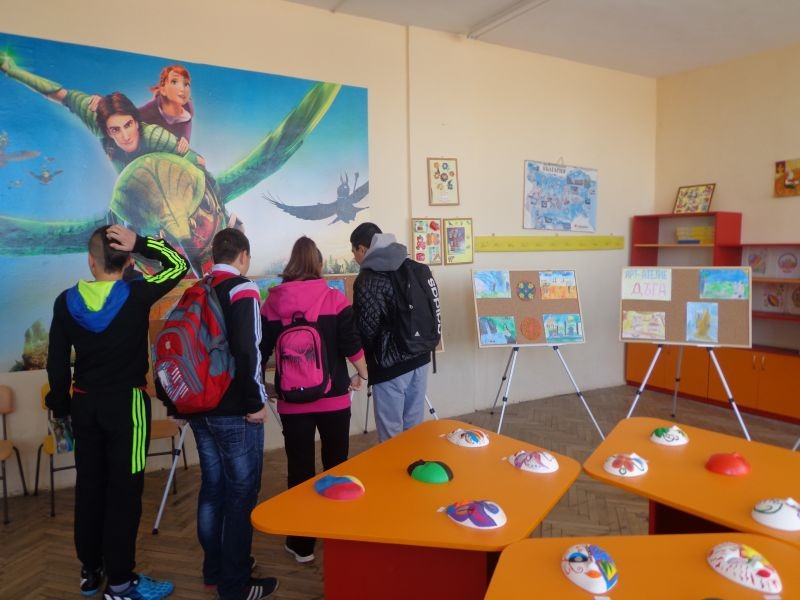 Учениците от ІІІ-а клас, участници в Арт-ателие "Дъга" по проект УСПЕХ, с ръководител Красимира Тонева, откриха изложба със свои творби. Малките художници посрещнаха с усмивка своите съученици, приятели, родители. Залата грееше с цветовете на дъгата от картини и колажи, а маските, декорирани от тях, събраха възхитените погледи на посетителите. Вещици и морски обитатели, дизайнерски проекти, рисунки, отразяващи историята ни радваха присъстващите.