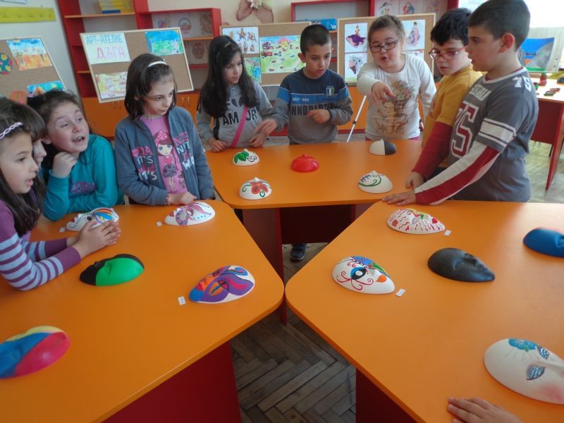 Учениците от ІІІ-а клас, участници в Арт-ателие "Дъга" по проект УСПЕХ, с ръководител Красимира Тонева, откриха изложба със свои творби. Малките художници посрещнаха с усмивка своите съученици, приятели, родители. Залата грееше с цветовете на дъгата от картини и колажи, а маските, декорирани от тях, събраха възхитените погледи на посетителите. Вещици и морски обитатели, дизайнерски проекти, рисунки, отразяващи историята ни радваха присъстващите.