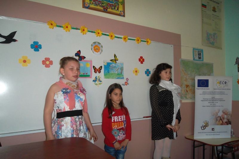 В последния ден от месец март учениците от 2”а” клас, участници в секция „Уча и играя на компютъра” по проект „Успех”, с ръководител г-жа Йорданка Стефанова, представиха изработените от тях книжки по интересен и забавен начин пред своите родители и близки. Подготвените сценки, песни и стихотворения допълниха и освежиха мероприятието. Всяко едно от децата приключи участието си по проекта обогатено със знания за работа в програмите "Paint", "Microsoft Word", както и в софтуерния образователен пакет "Comenius Logo". Тези часове обогатиха и разнообразиха живота на децата в училище.