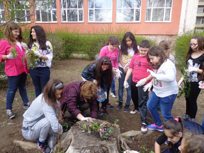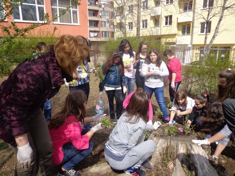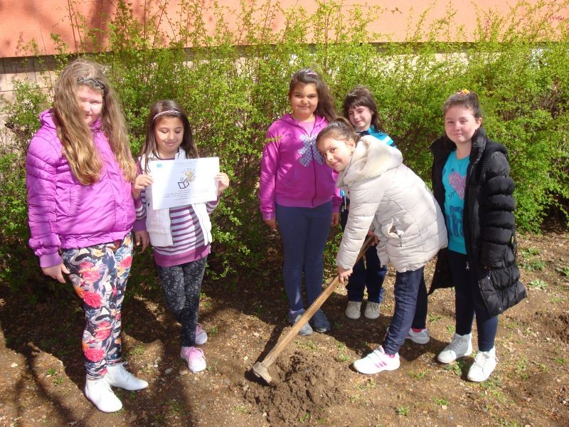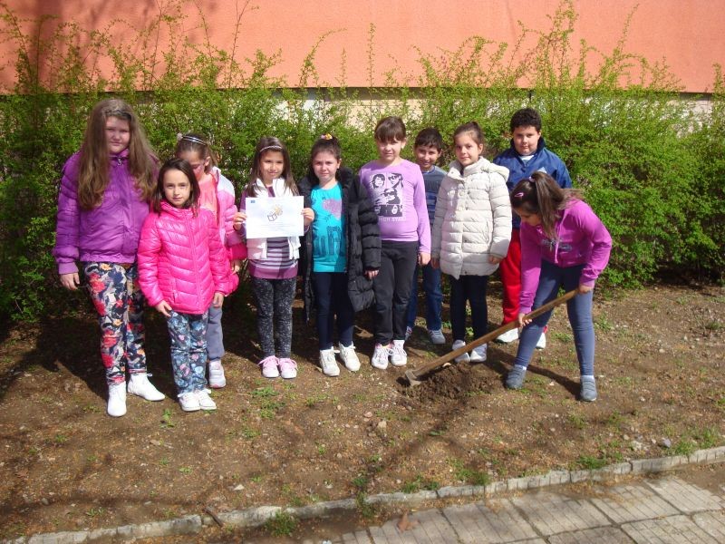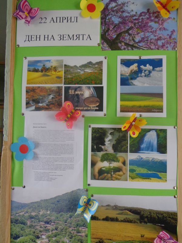 На 22.04.2015 г. светът отбелязва Деня на Земята. Да засадиш цвете или дърво, да се погрижиш за животно в природата, да я пазиш чиста - това означава, че не ти е безразлично твоето бъдеще на планетата Земя. Този ден беше отбелязан и при нас. Второкласниците на госпожа Петрова направиха табло, свързано с празника и заедно с четвъртокласниците засадиха декоративни храсти. По-рано учениците от пети клас с много желание и емоции оформиха малък цветен кът в двора на училището.