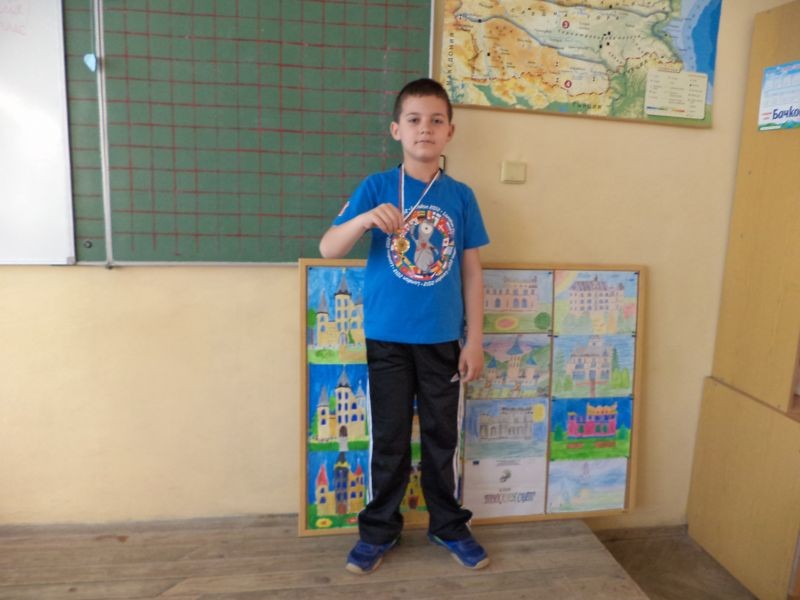 Мартин Станимиров Христов от II "а" клас тренира баскетбол от няколко месеца, но вече участва в турнири заедно с четвъртокласници. На проведения в Бургас "Баскетфест 2015" за деца до 10 години отборът е победител и Мартин се гордее със златния си медал.