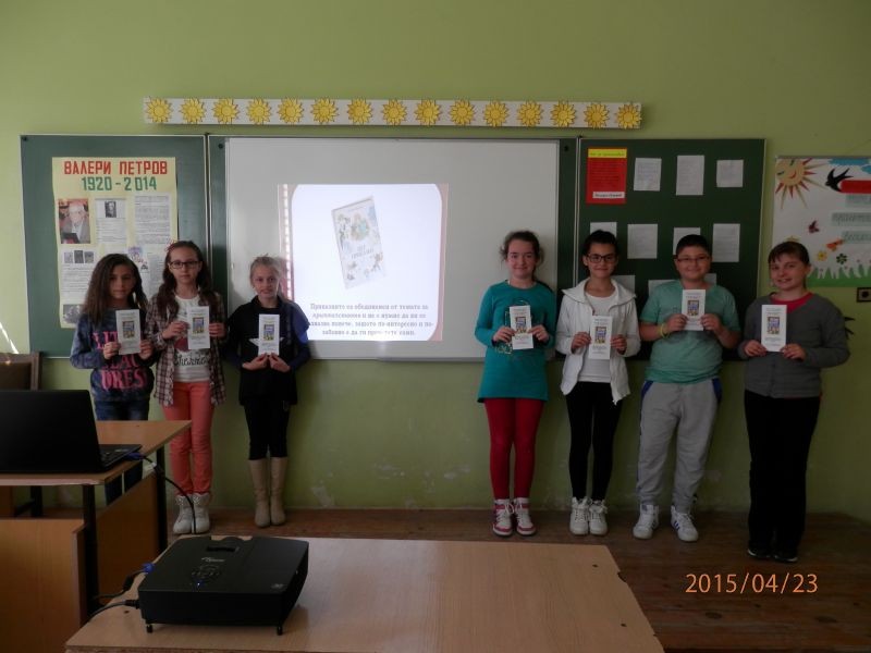 На 23 април в ОУ "Елисавета Багряна" се проведе литературен маратон по книгата на Валери Петров "Пет приказки", посветен на 95 години от рождението на писателя.