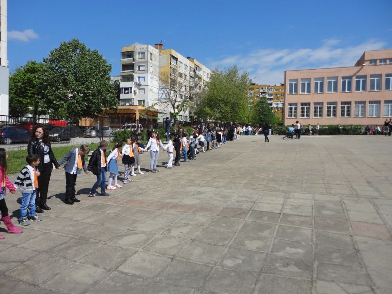 В прекрасната инициатива „Да прегърнем любимото училище” на Ученическия съвет при училището присъстващите ученици, родители и учители хванати за ръце направиха символична прегръдка на любимото училище.