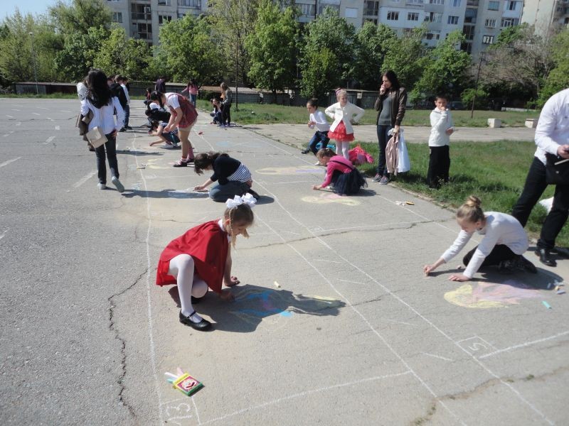 Децата имаха възможност да направят рисунка на асфалт и да се изявят като модерни танцьори чрез Зумба - фитнес танците.