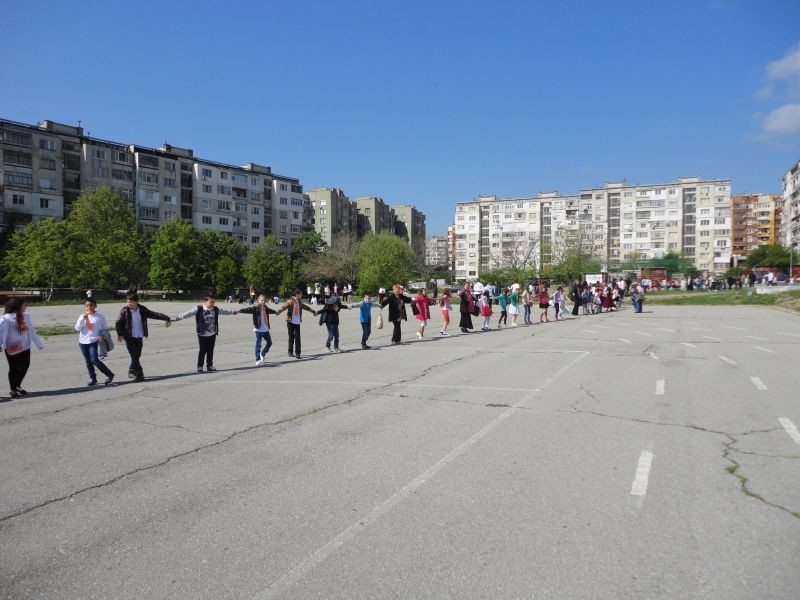 В прекрасната инициатива „Да прегърнем любимото училище” на Ученическия съвет при училището присъстващите ученици, родители и учители хванати за ръце направиха символична прегръдка на любимото училище.