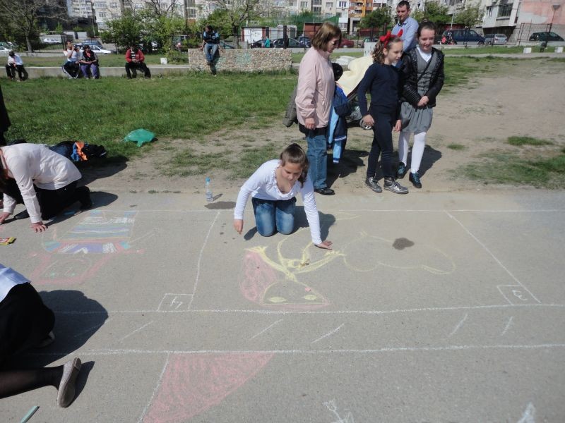 Децата имаха възможност да направят рисунка на асфалт и да се изявят като модерни танцьори чрез Зумба - фитнес танците.