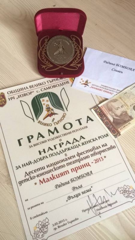 постановка "Вълци нема"постановка "Вълци нема"постановка "Вълци нема"постановка "Вълци нема" постановка "Осмият олтар"постановка "Осмият олтар"постановка "Осмият олтар"грамотаНагради на Радина Бомбова