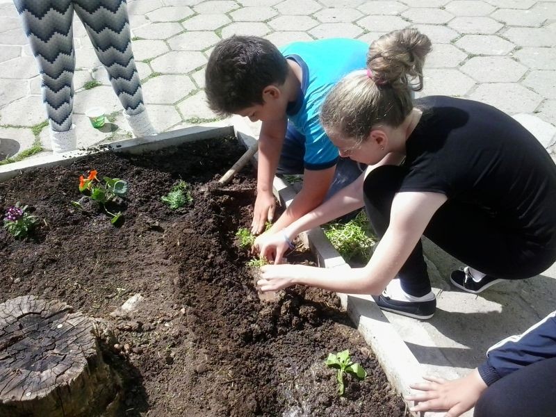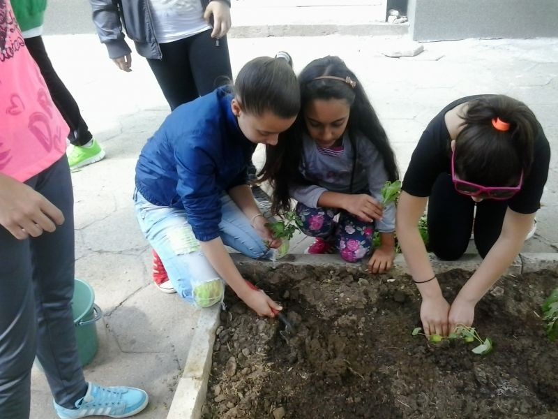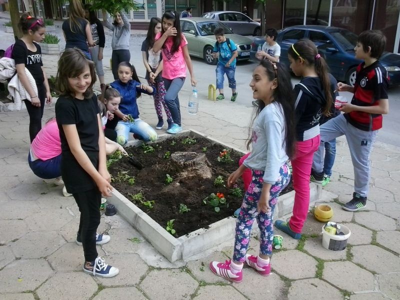 Със засаждане на цветя бяха оформени градинките пред сградата на втори корпус на Хуманитарна гимназия „Дамян Дамянов”. Учениците от V и VI клас проведоха акция по облагородяване на пространството около училище в чест на Деня на Европа и по повод изпращането на абитуриентите от випуск 2015.