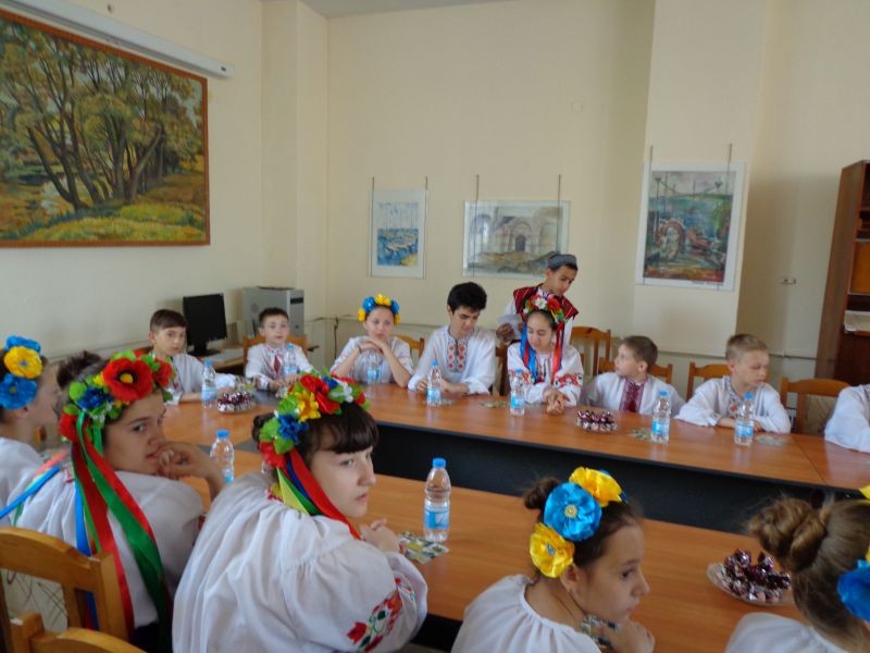 На милата среща между ученици от СОУ "Йордан Йовков" и гости от Украйна една от ръководителките сподели, че за първи път посещават България, земята на техните деди и прадеди. За това са се подготвяли дълго в неделното училище, в което разучавали български песни и танци!