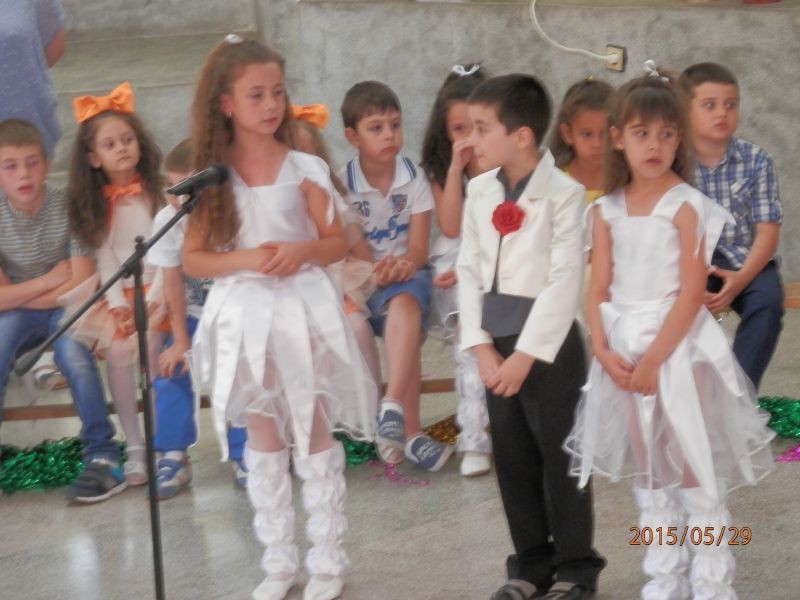 На 29.05.2015 г. бъдещите ученици от ОДЗ "Елица" завършиха учебната година с прекрасен концерт на форума в ОУ "Елисавета Багряна". Децата подариха на публиката много усмивки и весело настроение със своите чудесни танци, песни и стихотворения.