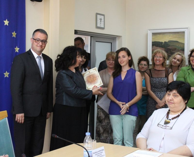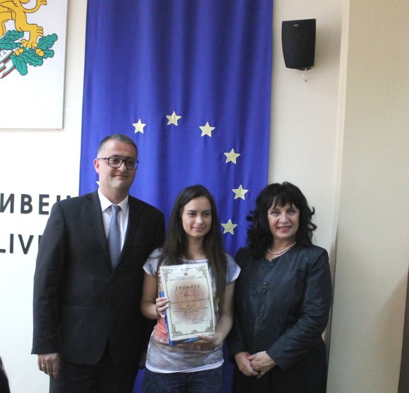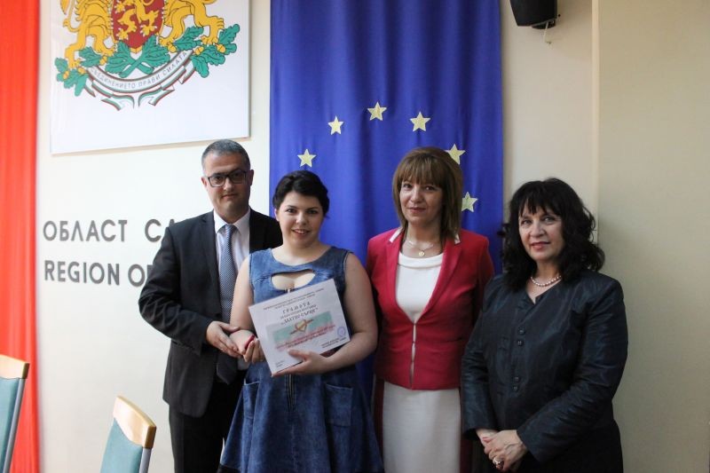 На 01.06.2015 г. в 12.00 часа в конферентната зала на Областна администрация Сливен, областният управител Димитър Сяров връчи грамоти на випускници от областта, които завършват гимназиален етап на образование с общ успех Отличен 6,00, както и на изявени ученици, завоювали призови места в международни и национални състезания.