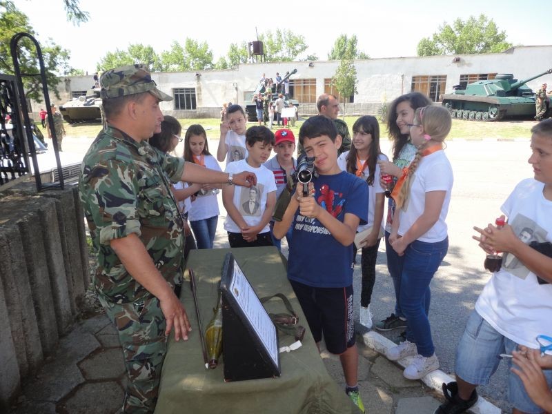 На 01.06.2015г. от 10.00 до 12.00 ч. по повод международния ден на детето, учениците при ОУ „ Елисавета Багряна” от клуб „ Млади възрожденци” към общобългарския комитет „ Васил Левски” приеха поканата на Центъра за подготовка на специалисти гр. Сливен в „Ден на отворените врати” и посетиха сливенския гарнизон. Децата с интерес и голямо въодушевление разгледаха колекцията от бойни машини и оръжия, имаха възможност да разгледат новосъздадената музейна експозиция „Славата на българската броня”, посветена на 100- годишнината от създаването на танковите войски в България, слушаха с възхита оркестъра и неговия набор от музикални изпълнения. Младите възрожденци с удоволствие опитаха от прословутата „ войнишка боб чорба” и останаха наистина удовлетворени. Специална беседа им изнесе майор Светлана Георгиева във връзка с откриването на музея и неговите нови експонати.