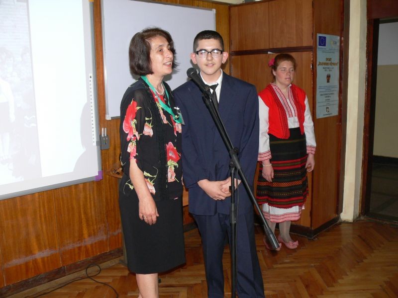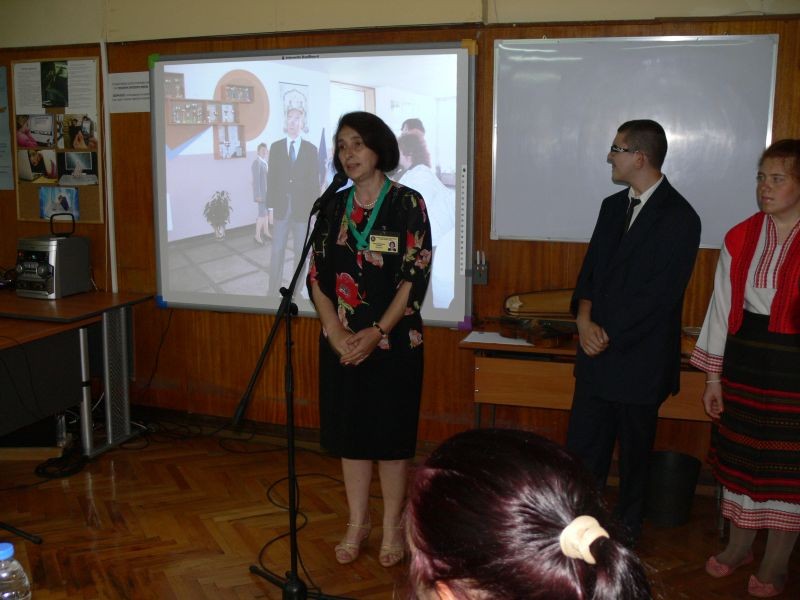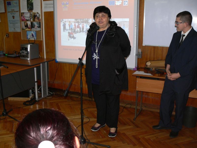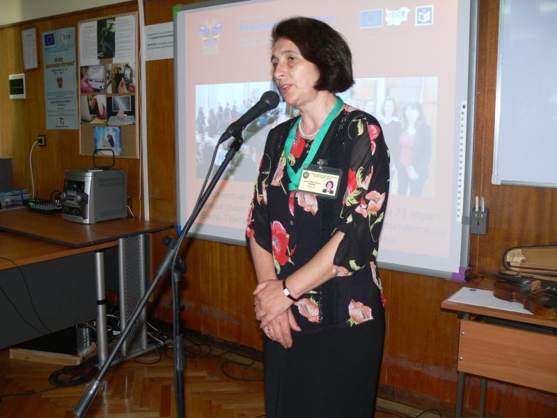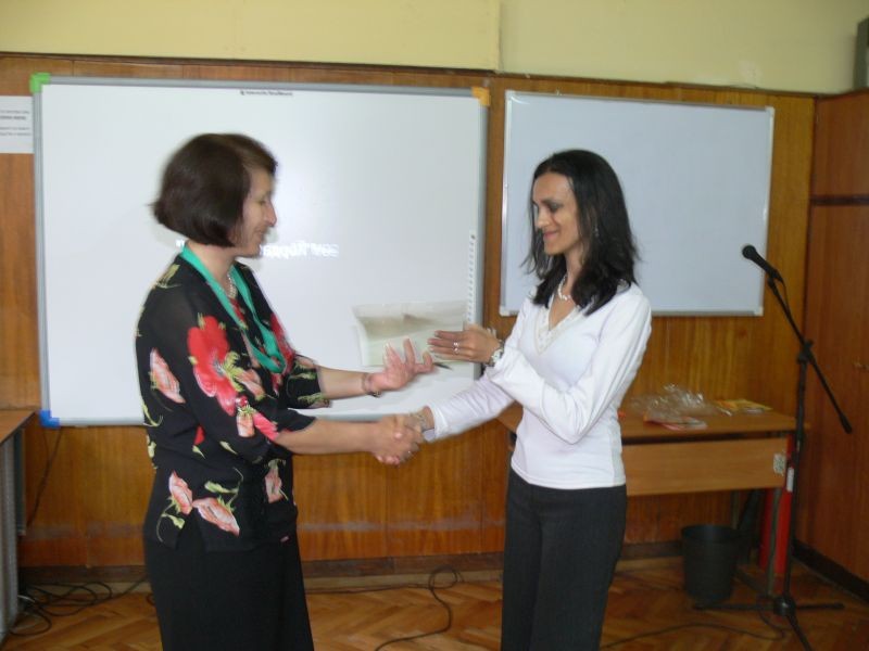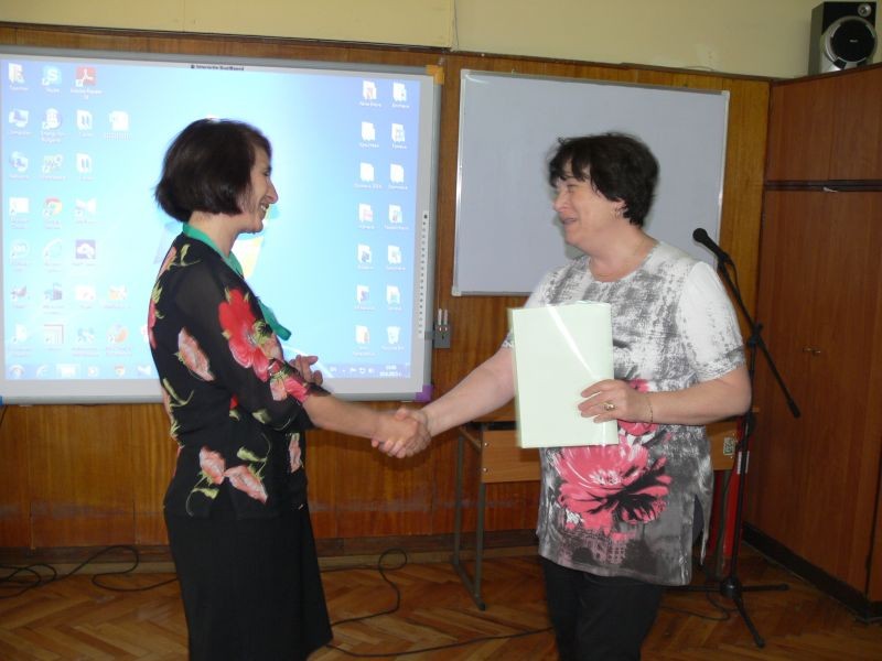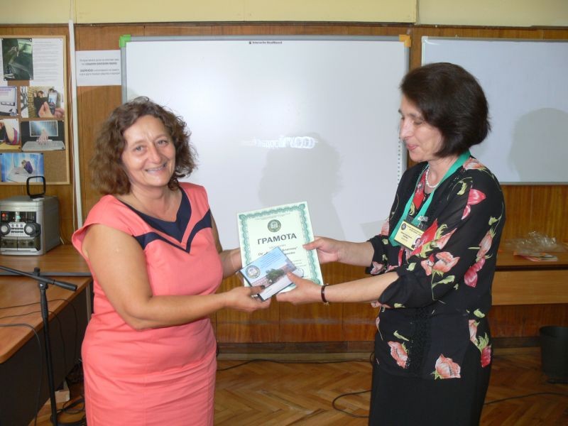 Г-жа Кънева - директор на СОУ "Йордан Йовков" - Сливен, удостои с грамоти всички участници в кръглата маса.