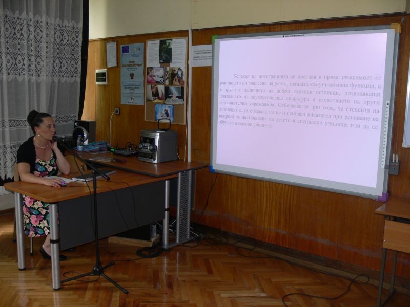 Екипи от специалисти по проекта от дванадесет училища - ОУ "Димитър Благоев" гр. Велико Търново, СОУ "Цанко Церковски" гр. Полски Тръмбеш, СОУ "Иван Вазов" гр. Нова Загора, ОУ "Христо Смирненски" с. Тулово, СОУ "Васил Левски" гр. Кула, СОУ "Христо Ботев" гр. Карнобат, ОУ "Проф. Марин Дринов" гр. Панагюрище, СОУ "Братя Миладинови" гр. Пловдив, СОУ "Св.Паисий Хилендарски" гр. Хасково, СОУ "Георги Каравелов" гр. Шивачево, 28 СОУ "Алеко Константинов" гр. София и СОУ "Йордан Йовков" гр. Сливен - споделиха интересни моменти от своята работа, търсейки най-добрите възможности и решения за обучението и приобщаването на децата със специални образователни потребности в съвременното българско училище.
