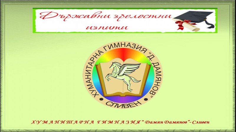 От 6 до 17 юли се подават заявления за допускане до държавни зрелостни изпити, сесия август-септември. Бланка за заявление можете да попълните и подадете в канцеларията на Хуманитарна гимназия „Д. Дамянов” всеки ден от 8:30 до 16:30 часа.