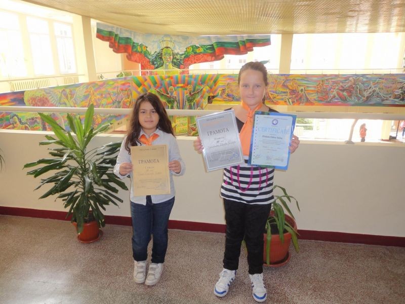 Малките ни математички от III "в" клас при ОУ "Елисавета Багряна" гр. Сливен - Мария Колева, класирана на 1-во място и Християна Василева, класирана на 2-ро място в своята възрастова група, доказаха още веднъж, че трудът и постоянството се възнаграждават.