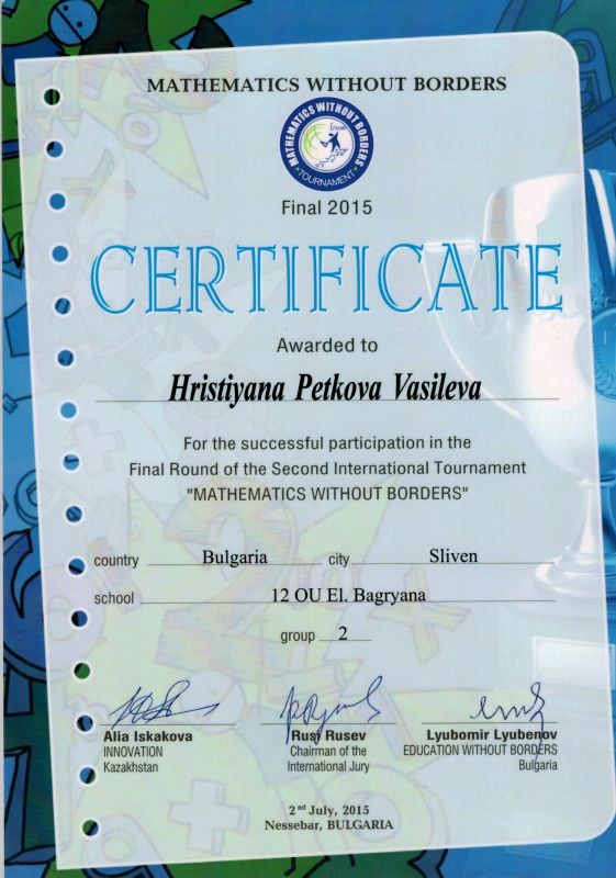 Християна Василева зае призово място и в състезанието "Математика без граници".