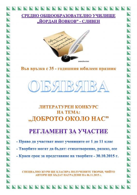 КОНКУРСИ, ПОСВЕТЕНИ НА 35-ГОДИШНИЯ ЮБИЛЕЕН ПРАЗНИК