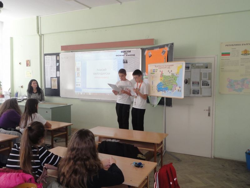 На 28.10.15 г. от 13 ч., в навечерието на празника на Народните будители - 1 Ноември, деца от клуб „Млади възрожденци” заедно със своя ръководител г-жа Силвия Китанова и Ученическият съвет при ОУ „Елисавета Багряна” гр. Сливен проведоха открито занятие на тема: „Народните будители- преди и сега”. Учениците направиха един по- модерен и различен прочит на нашата история и представата за народните будители в миналото и в настоящето. На събитието присъстваха г-жа Величка Христова - директор на ОУ „Елисавета Багряна” и г-жа Маргарита Урумова - помощник директор УВД. Децата бяха много изобретателни и самостоятелно подготвиха информационно табло, което поставиха във форума на училището.