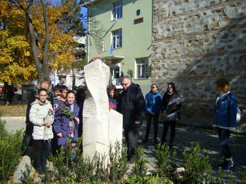 Цветя на признателност от името на училищната общност бяха поставени и върху мемориалната чешма на големия сливенски поет Дамян Дамянов, патрон на гимназията. Чешмата, разположена в центъра на града, бе възстановена наскоро във връзка с 80- годишнината от рождението на поета.