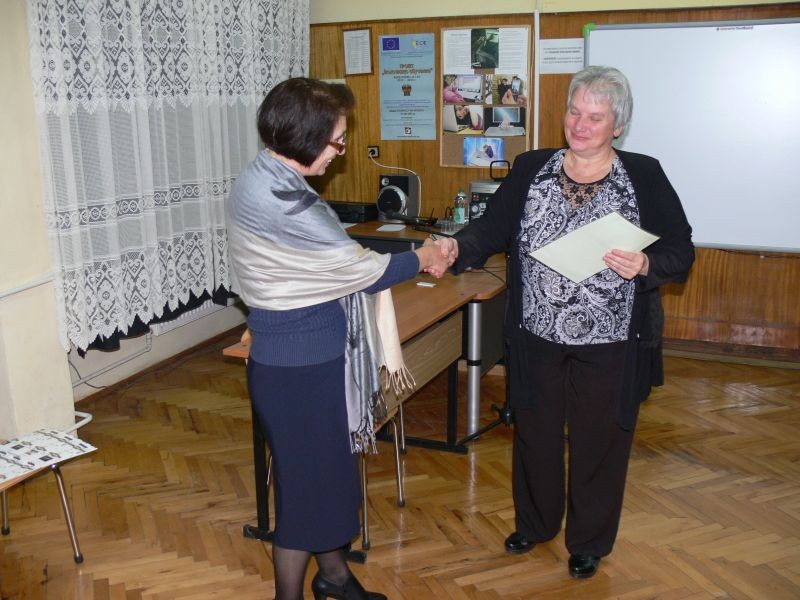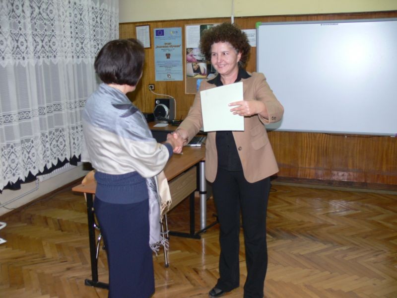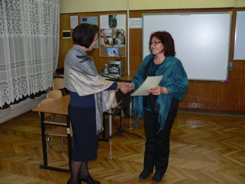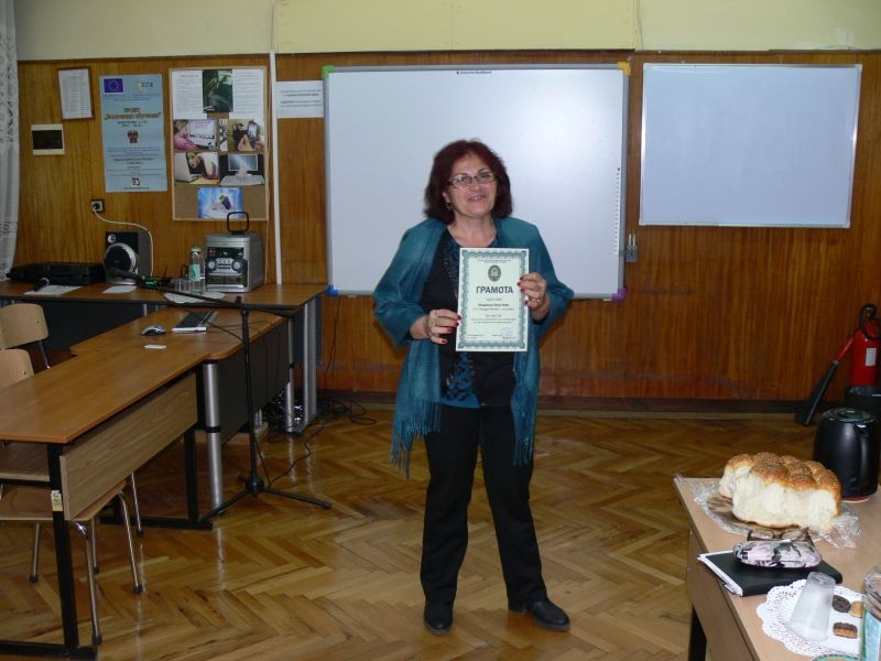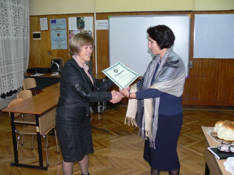 Г-жа Диана Кънева, директор на СОУ "Йордан Йовков", награди изявилите се учители с грамоти за творческо присъствие.