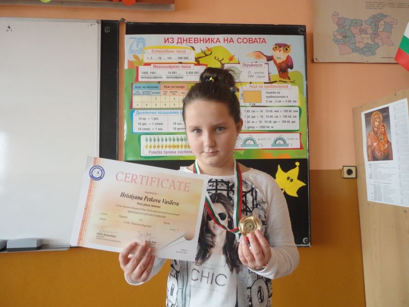 На международното състезание „Математика без граници” Християна Петкова Василева от III „в” клас бе наградена със златен медал.