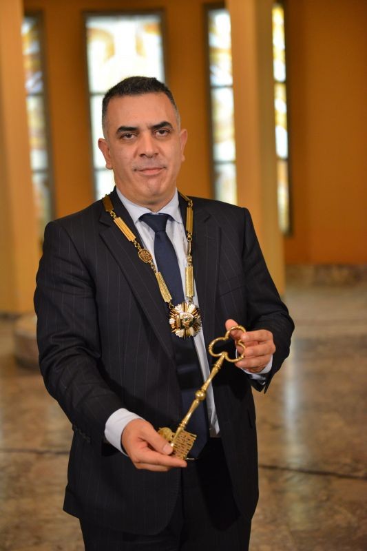 По-късно на тържествена церемония във фоайето на общината досегашният кмет Кольо Милев предаде атрибутите на властта – кметската огърлица с герб и символния ключ на града на новоизбрания кмет Стефан Радев. Милев приветства своя наследник на поста, като пожела на него и екипа му ползотворна работа за благото на общината. Пред гостите на церемонията и служителите от общинска администрация Радев подчерта, че вярва в приемствеността и ще заложи на нея по време на мандата си. „Всички добри практики, които вече ги има и се одобряват от сливенци ще бъдат продължени", посочи той. Новият кмет изрази надежда, че очакванията към него самия и екипа му ще бъдат оправдани и след четири години ще има видими резултати от управлението им.