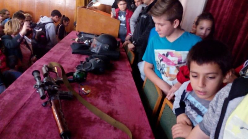 Там имаха възможност да се качат на специализиран автомобил, да видят дежурна стая и част от въоръжението на група за борба с тероризма.
