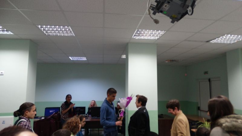 В мултимедийната зала на гимназията, учениците от 11 клас се срещнаха с журналистката Веселина Седларска. Те разговаряха открито и много отговорно за проблемите, които провокират толерантността. Въпросът, защо трябва да бъдем толерантни, действително е труден и повечето от нас го усещат във всекидневната си вътрешна борба между подтика да се самоналожим и аргументите да отстъпим. В разговора стана ясно, че толерантността в човешките отношения се свързва най-вече с безконфликтното съвместно съществуване и признаване на други култури, народи и религии. Обратна на толерантността е нетърпимостта, съзнанието за изключителност и единствено превъзходство, отричащо многообразието. Дискусията следваше естествения си ход – през съвместното живеене с различни етноси и осмислянето на живота като бежанец или емигрант до терористичните събития в Париж на 13 ноември. За кратко време участниците доказаха, че философията на толерантността последователно поддържа и развива идеята, че се основава на “диалогичния характер” на човешкия живот и особено важна е способността на всеки един от нас да прониква в гледната точка на всекиго.