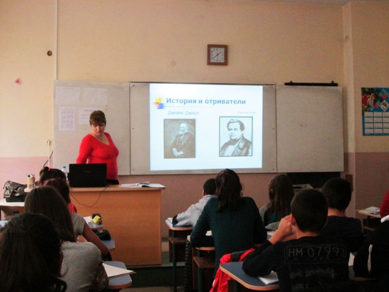 На 11 ноември г-жа Росица Перендибазова проведе електронен урок с учениците от VII а клас в Седмо основно училище "Панайот Хитов" на тема "Електрическа енергия. Закон на Джаул - Ленц".