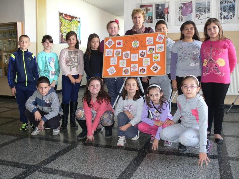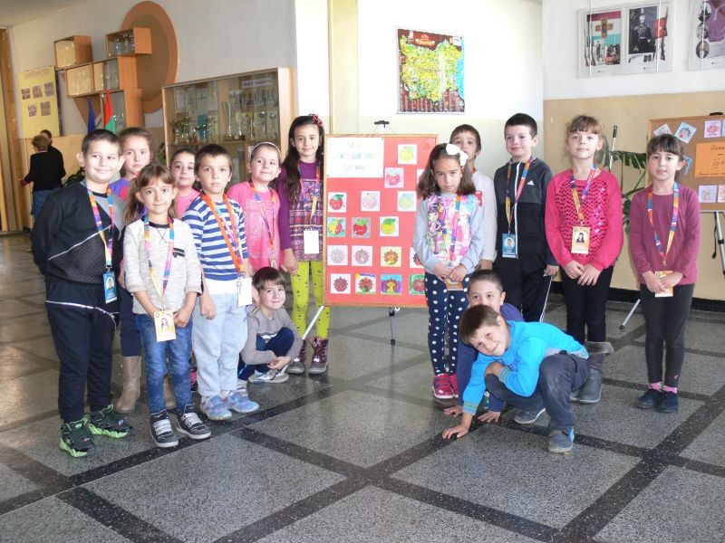 Оцветявайки различни плодчета по схема "Училищен плод", учениците от начален етап показаха не само творческото си въображение, но и трайни знания за здравословното хранене.